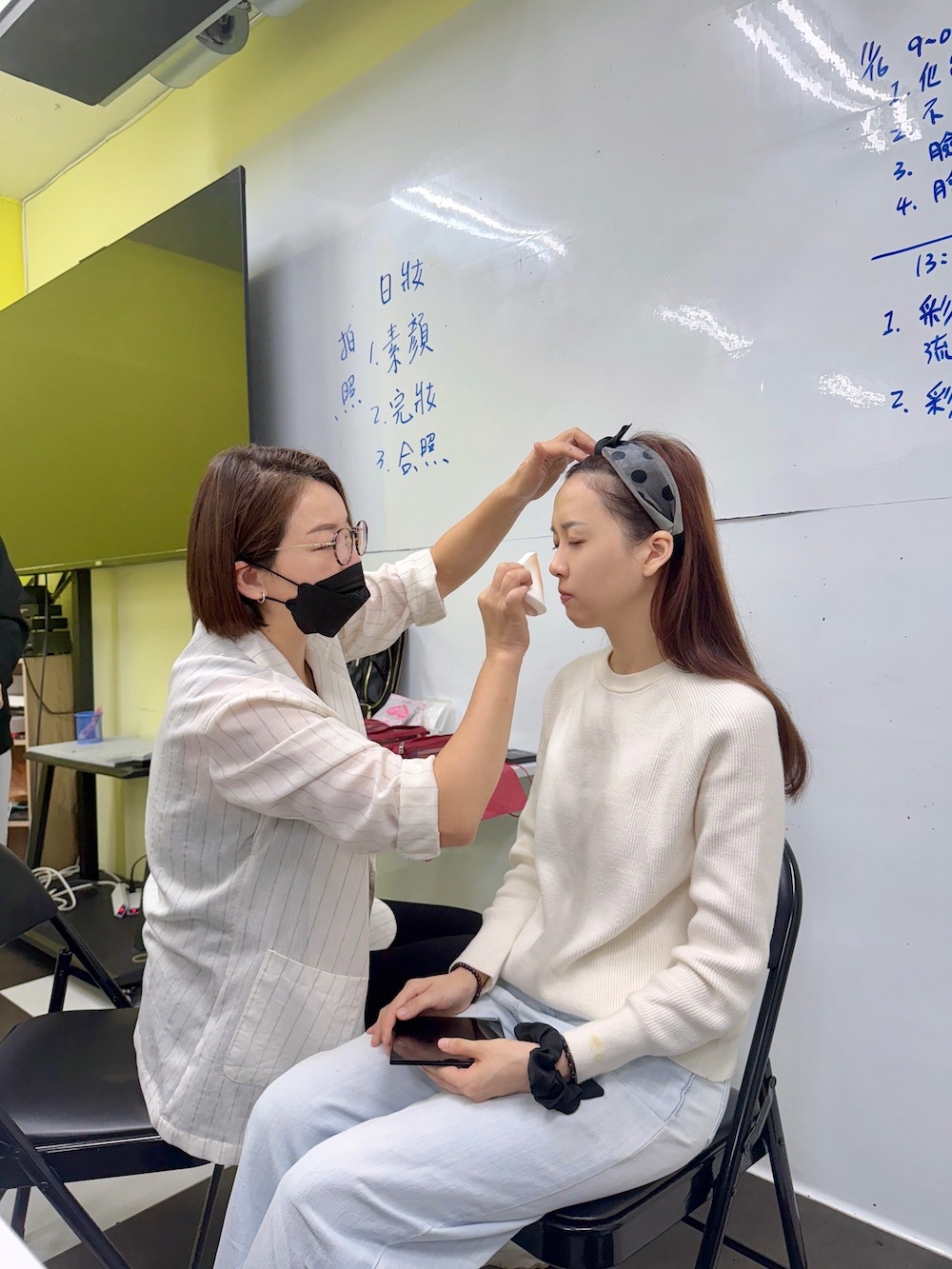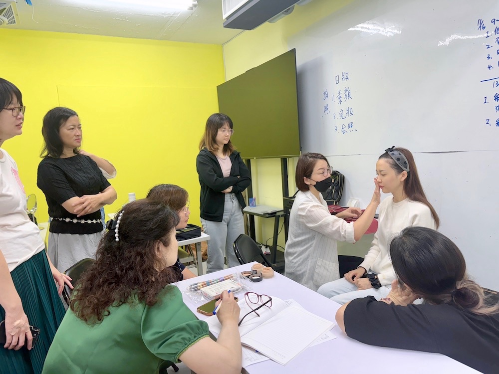 老師會根據學員的五官特點調整教學,例如我的兩頰較胖,老師建議用柔和線條修飾,創造自然女性化輪廓,避免過度遮蓋而顯得不自然。