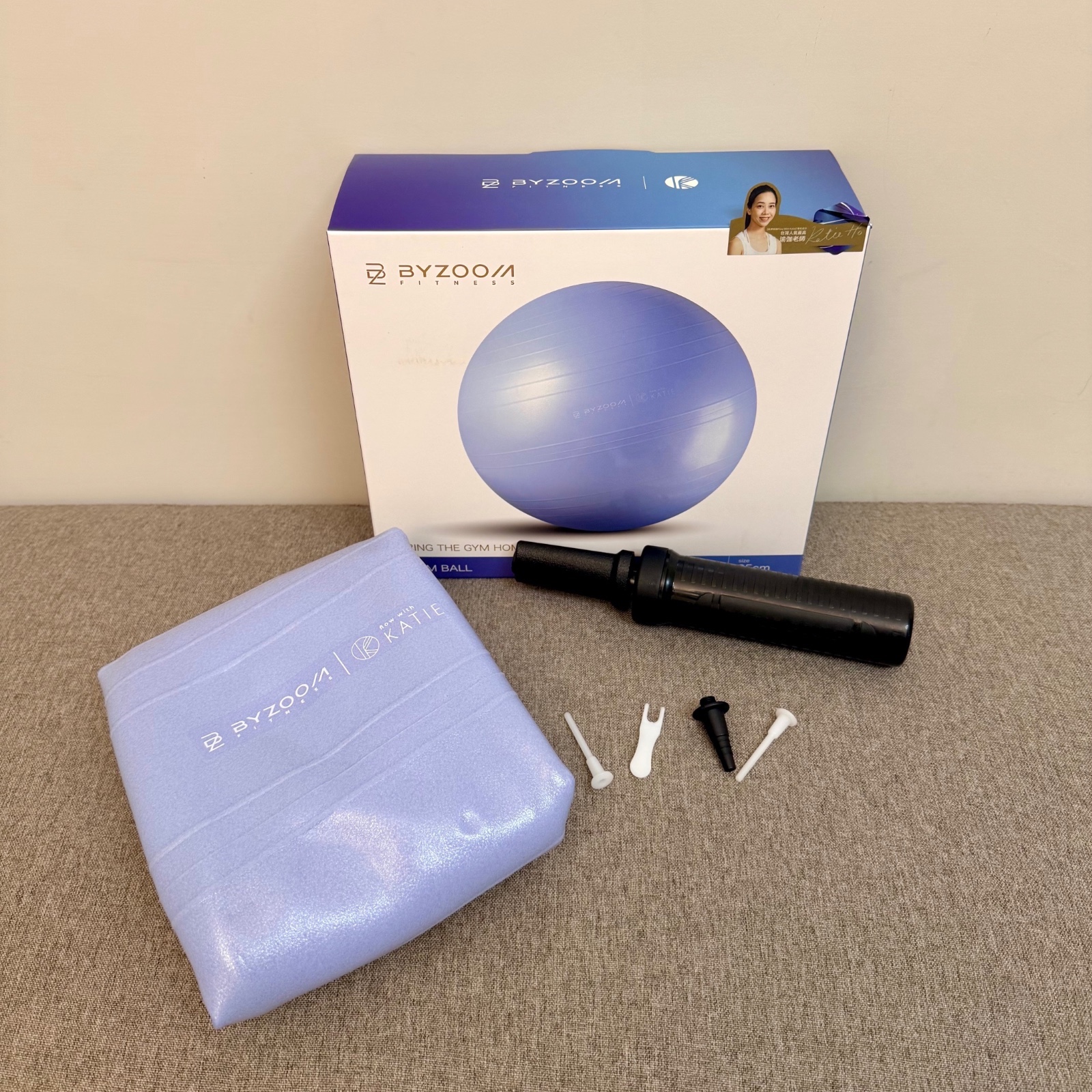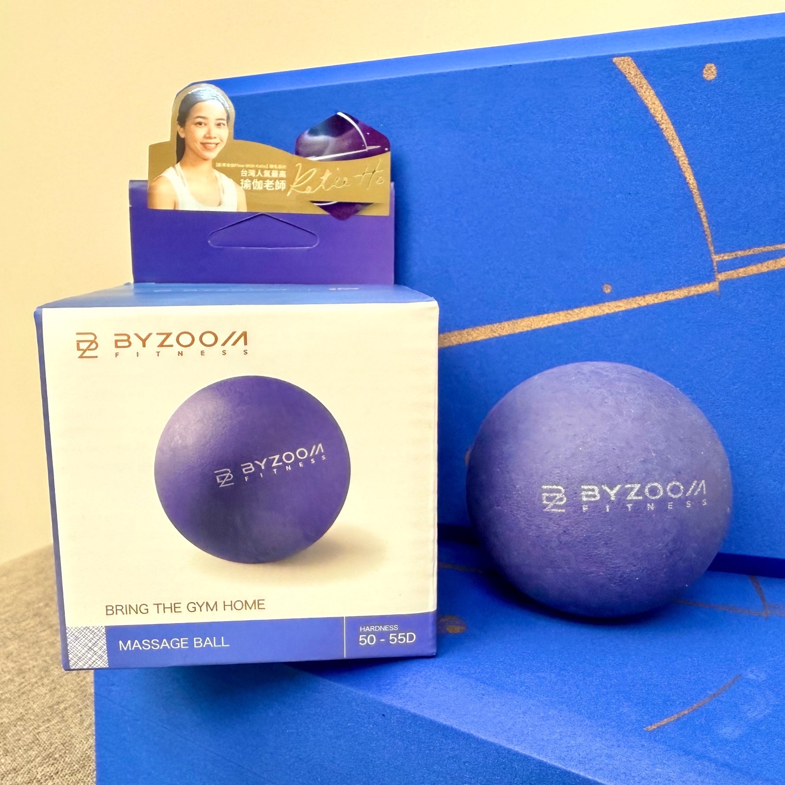 老師教授了許多在家也能持續練習的動作,這時我才發現,工欲善其事,必先利其器。如果你跟我一樣,在意練習時的流暢感,甚至對輔具的質感有那麼一點堅持,那這組 BYZOOM 與凱蒂瑜珈老師聯名的瑜珈墊組合,真的值得細細品味。